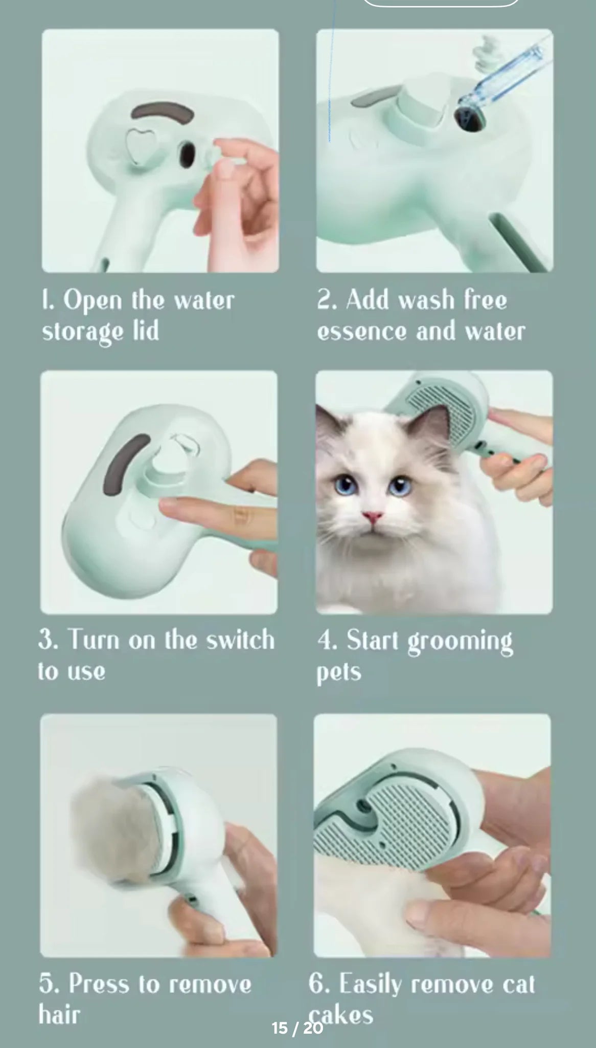 Keep your pets looking healthy, beautiful, and beautiful with this multi-functional steam grooming brush. Designed for both dogs and cats, it removes loose hair, detangles fur, and provides a gentle massage for a soothing grooming experience. Ideal for daily grooming, this tool makes grooming easy, safe, and stress-free.